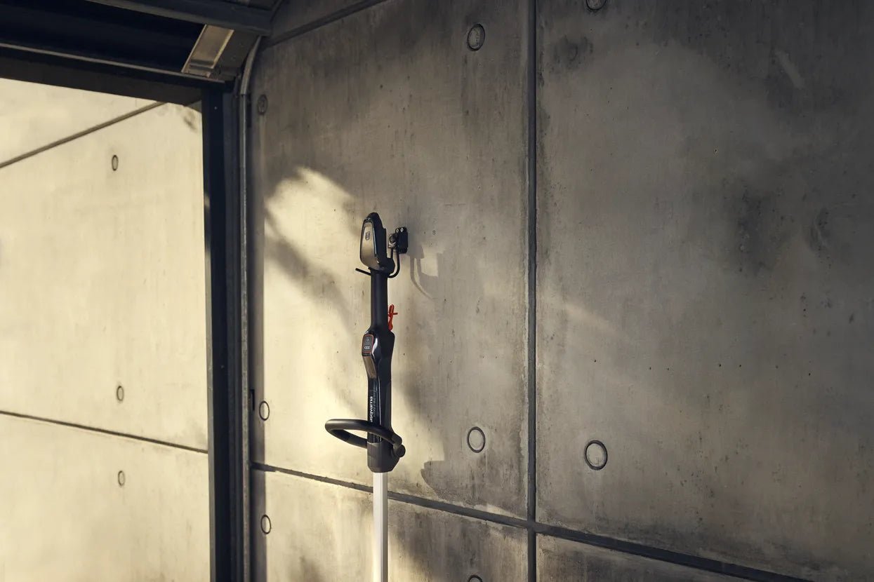 The Husqvarna Aspire battery powered tools has been developed with limited space in mind. This is why every product comes with a tailor made storage hook which can be mounted directly on the wall or used with the Husqvarna Aspire Storage Rail system. This tool storage can be extended with all gardening tools alongside the Aspire rail system.