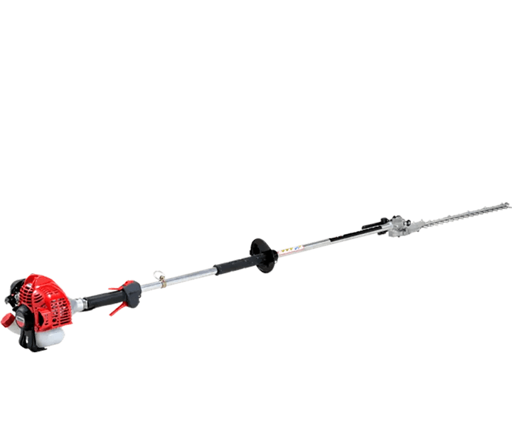 Long reach shafted hedge trimmer with easy starting and ergonomic, lightweight design.