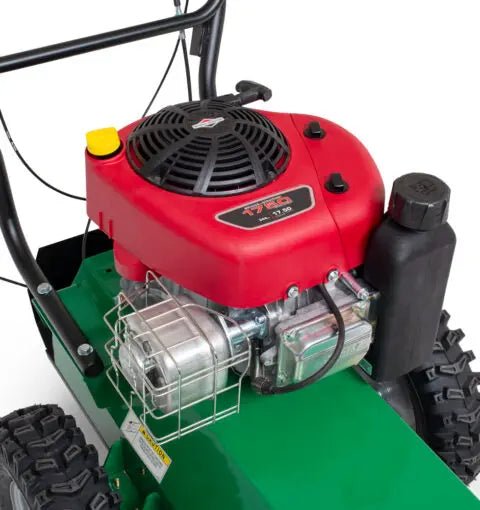 The mechanical transaxle, featuring 3 speeds forward and 1 reverse, is ideal for clearing meadows and fields or cutting paths and trails wherever dense brush and weeds present a clean-up challenge.