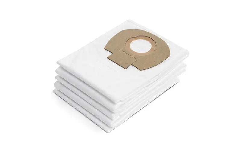Filter bags in durable fleece material. Use of filter bag improves fill rate, extends filter cleaning interval when vacuuming fine dust and simplifies disposal. 5 pieces. Fits WDC?200 and 300 series.