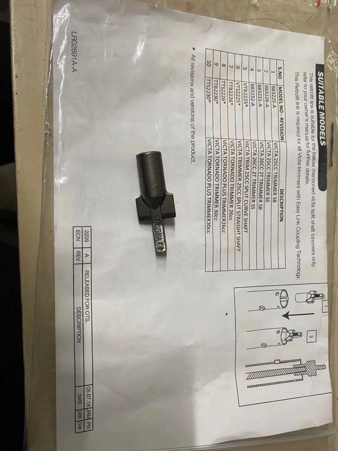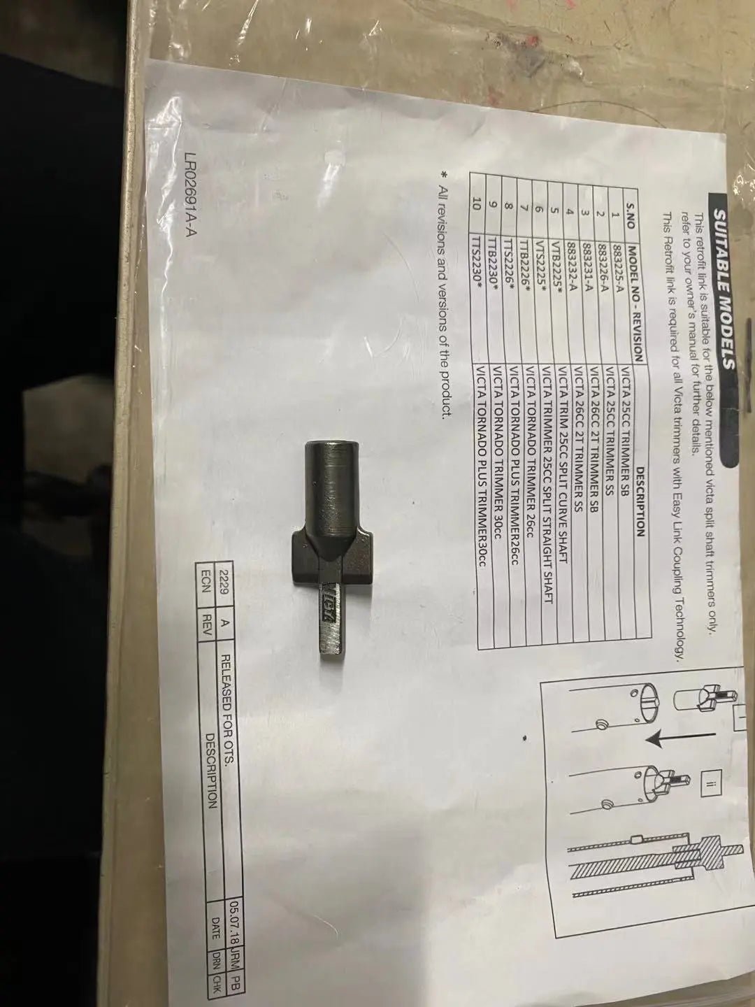 | TR00398S | Genuine Victa Drive Pin Adaptor Kit | N/A |