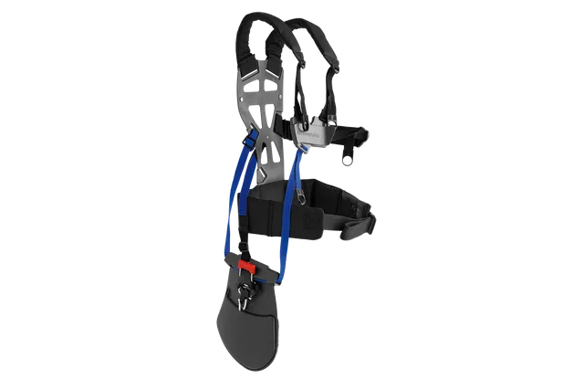 Harness Balance X distributes the load across a large area for added comfort. The harness has a wide and ventilated back plate and wide shoulder pads. This reduces strain and gives weight distribution between the left and right shoulder and between the hip and shoulder. The shock absorbing hip pad can be adjusted for grass- or forest position and has a travel connection. The harness is very easy to adjust for the best fit with an easy chest plate and hip belt. The quick release helps to remove the product from the harness easily and safely.