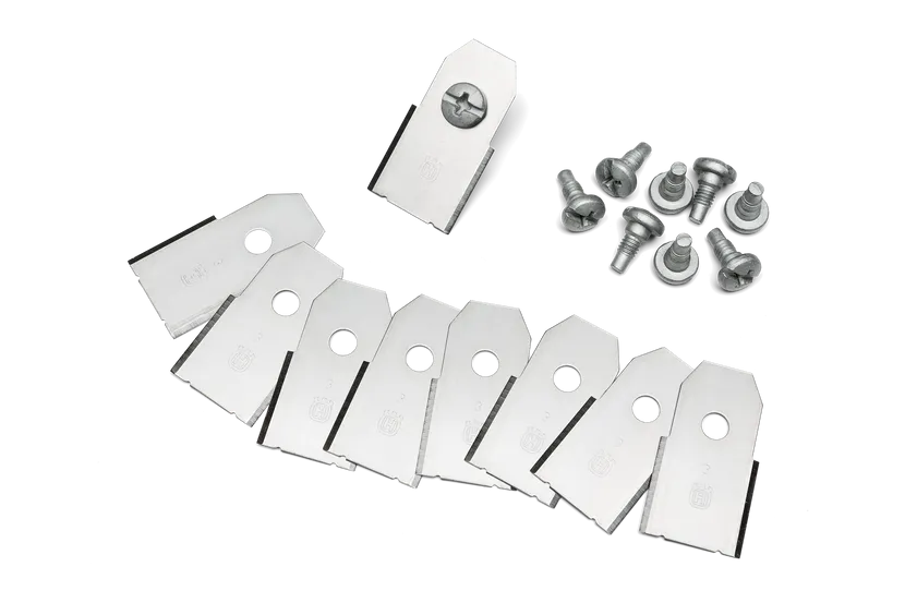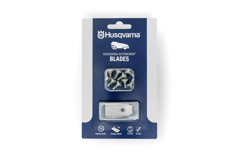 Husqvarna Automower® Blades – hardened carbon steel blades, designed for safe handling and pivoting functionality. Safety blade according to standards.