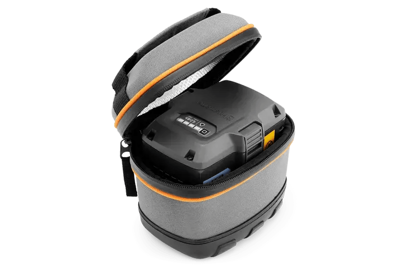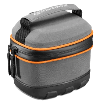 Insulating, splash water-proof and shock-absorbing bag for Husqvarna BLi 10/20/200 batteries. Thermo coating to keep an even operating temperature under under very cold or hot climate conditions. Easy to carry with both belt-loop or hook for arborists.