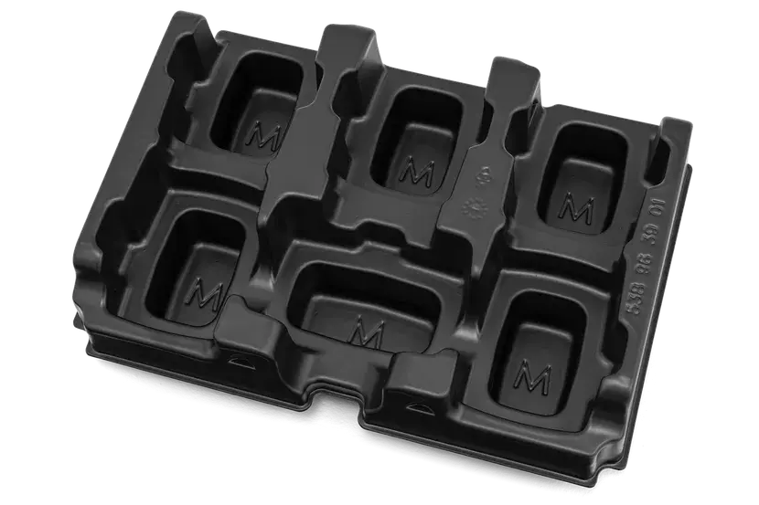 Robust insert for Husqvarna battery box, tailored for up to 6pcs of 36V M size* batteries.