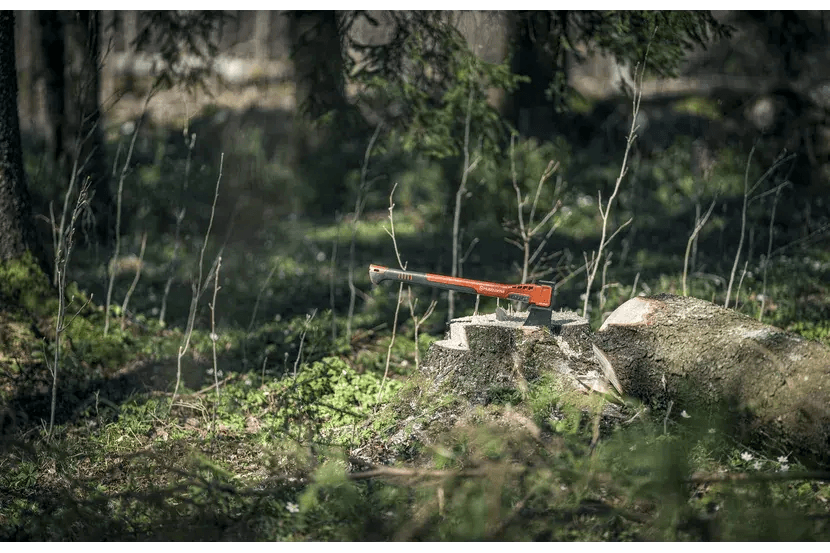 Splitting axe made for splitting firewood logs. The axe head has a non-stick coating which gives less friction and easy entry into the wood and the head geometry is adapted to the application of splitting medium- sized logs. Handle protection and long life due to the stainless steel shaft protection. Balance point close to the axe head gives perfect balance and weight distribution. The combination of the optimised axe head and the light shaft concentrates the power into the cut which splits logs easier. Fibre-reinforced PA shaft makes the axe durable and robust. Hammer function for an easy and effective use of splitting wedges (no steel wedges).
