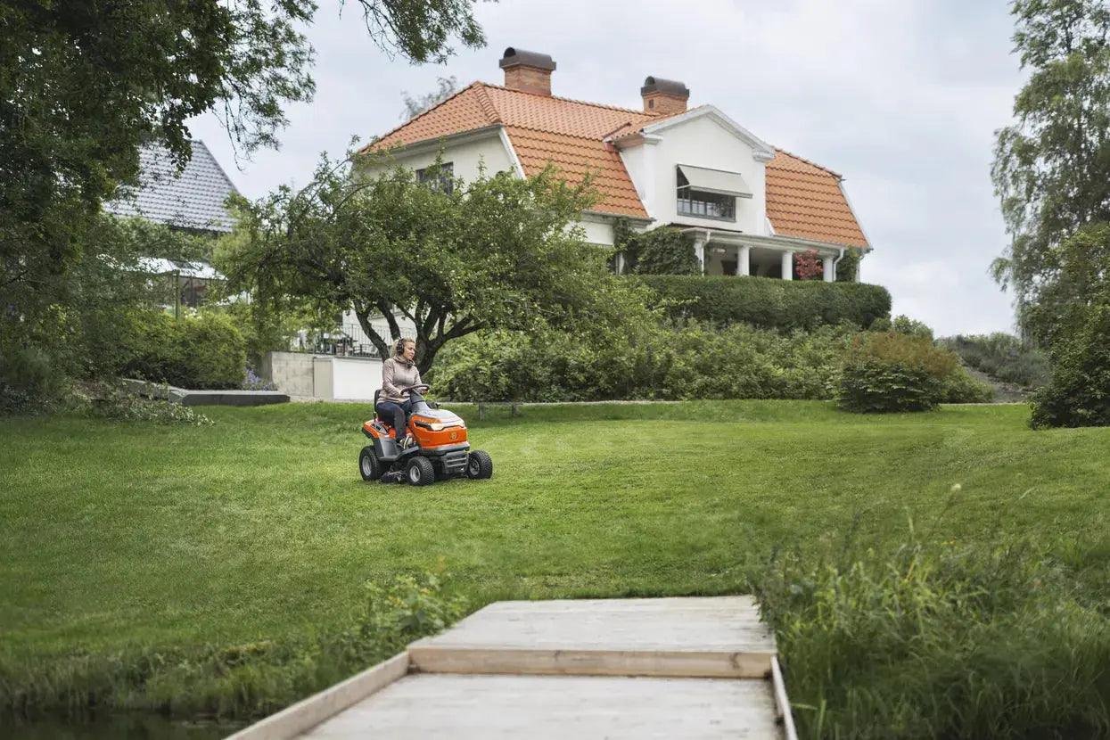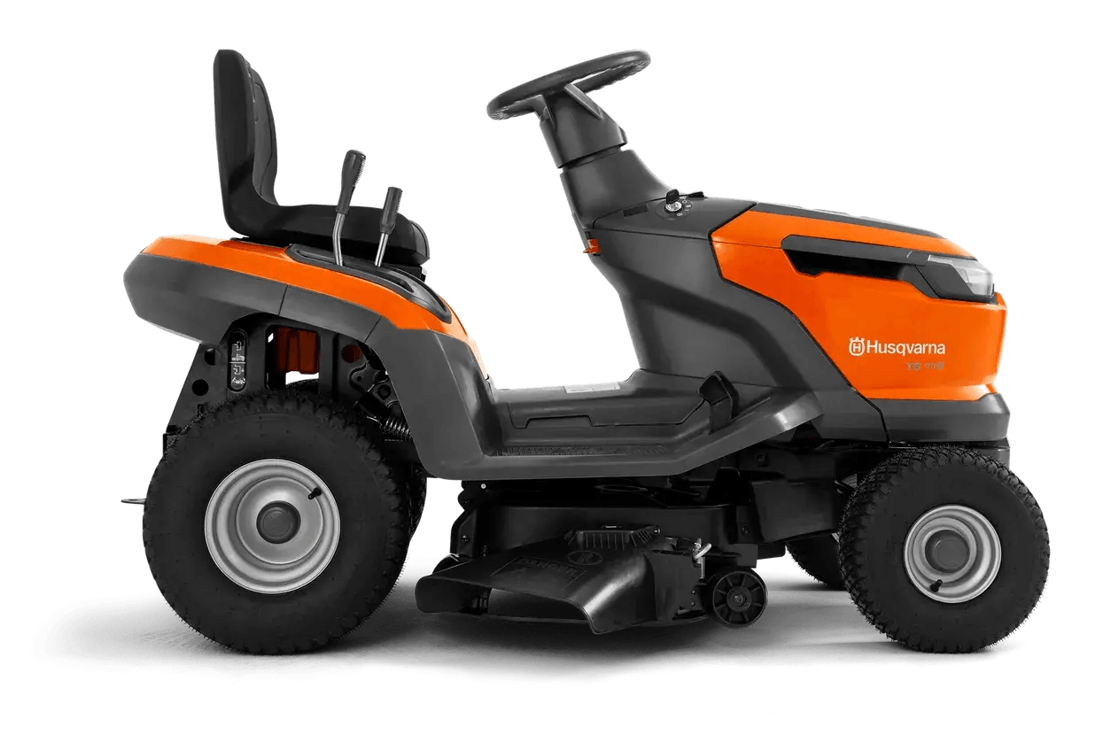 Husqvarna TS?112 is a garden tractor that efficiently mows large open lawns but whose compact design also enables easy manoeuvring in narrow passages and requires little space for storage. Experience a comfortable and hassle-free mowing experience thanks to easily accessible levers and side-by-side pedal placement. Adjustable driver seat and dual headlights also contribute to a smoother and more comfortable ride.