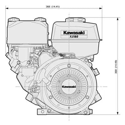The Kawasaki FJ180D Horizontal Shaft?petrol engine utilizes (OHV) overhead valve design technology. It features a dual element?air filter, cast iron cylinder sleeve, and a recoil starter with automatic compression release.?This Kawasaki model engine?has a great reputation for easy? starting and great reliability.