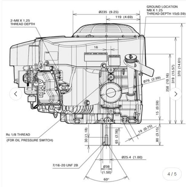 - Note :- Muffler Not Supplied with engine – Can be supplied at additional cost
