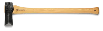 This heavier Splitting axe is best suited for splitting thicker wood and fire wood. The head is designed to easily go into the wood, with minimal effort by the chopper, and split the wood in two parts. The long handle creates extra power and has space for two-handed grip. Comes with an edge cover in leather. The head is attached to the handle using both a wooden and a steel wedge for a secure fastening.