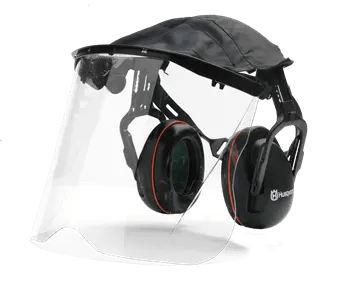 Protection for grass clearing and other tasks. Cover between visor and headband which prevents grass, chips and rain from entering from above. Complete as shown. The visor can also be purchased separately and fits the Complete helmet. Can also be fitted with a sun peak.
