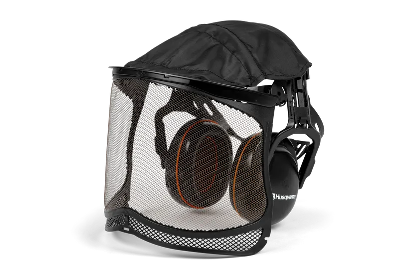 Comfortable hearing protectors where the pressure against the head is 20% adjustable. Equipped with Ultra Vison visor for optimal light transmission. Features a textile cover between visor and headband, protecting your head from grass, dust and rain. Always use in combination with safety glasses.