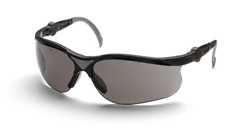 Protective glasses with non-scratch, grey tinted lenses with UV-protection for better vision in sunny conditions. frames can be extended and lenses can be angled. Meet requirements of EN?166, ANSI Z87+.