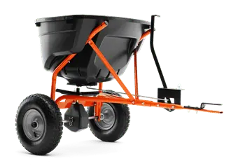 This handy spreader attaches to your ride-on mower and is ideal for spreading fertilser and seed in larger gardens. Comes with easily adjustable flow, enclosed commercial-grade gearbox for smooth rolling and easy maintenance and large pneumatic tyres for easy manoeuvrability. Durable nylon cover included. Load Capacity – 60kg. Spread width – 3.0 – 3.6m