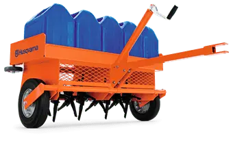 Husqvarna towable aerators have the capacity to aerate up to four acres per hour. Two independent tine rotors with 32 or 40 interchangeable closed spoon tines provide superior maneuverability around corners and tight areas. Optional weight containers allow you to adjust the weight to ensure optimal soil penetration. Rear mounted tip wheels allow the unit to pass through narrow openings.