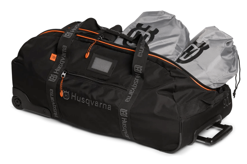 Our trolley bag, holding 90L, is perfect for transporting all your necessities. The u-shaped zipper on top makes packing easier, while the molded bottom and sides make the bag stand upright without support. For extra convenience, organizing bags are included, as well as an ID pocket for easy recognition.